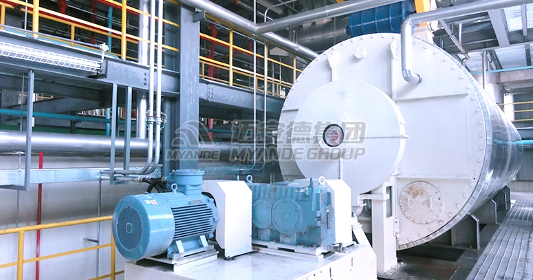 迈安德低温脱溶机是一种大型连续低温脱溶装置,由低温脱溶机A筒和B筒组成,辅以溶剂蒸汽过热器、溶剂蒸汽循环风机、旋转喂料器等装置组套为成套设备,实现食用低温脱溶大豆(或花生等)胚片的工业制取。