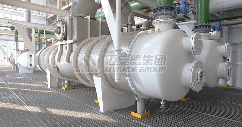 迈安德浸出器冷凝器主要用于植物油浸出车间,冷凝浸出器内部挥发出的溶剂及进料带进的空气、水蒸气等二次蒸汽,保持系统微负压,该设备属于管壳式换热器。