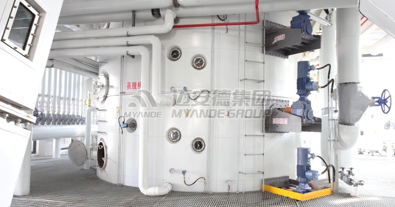 迈安德立式蒸脱机(DTDC)用于对浸出器出来的含溶湿粕进行脱溶、烤粕、干燥、冷却,同时配有喷射式抽气装置,用于回收二次蒸汽,降低高温粕的湿度,提升粕的香味和感官滋味。