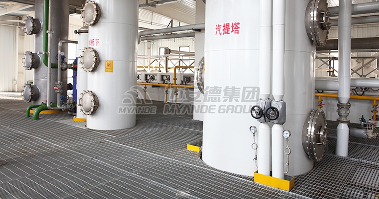 迈安德筛盘汽提塔适用于处理植物油脂浸出工厂中的混合油(萃取混合油的溶剂为正己烷)。本设备需在负压环境中操作,降低高浓度的混合油的沸点,尽可能在最低的温度下将油中残留溶剂脱除。