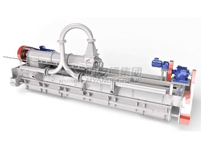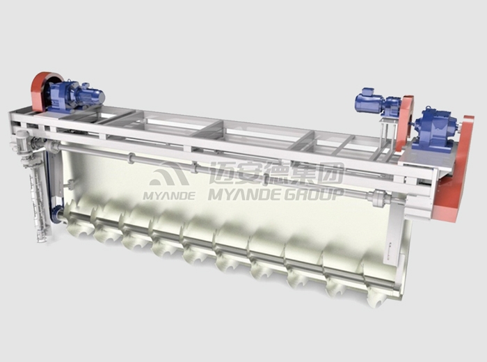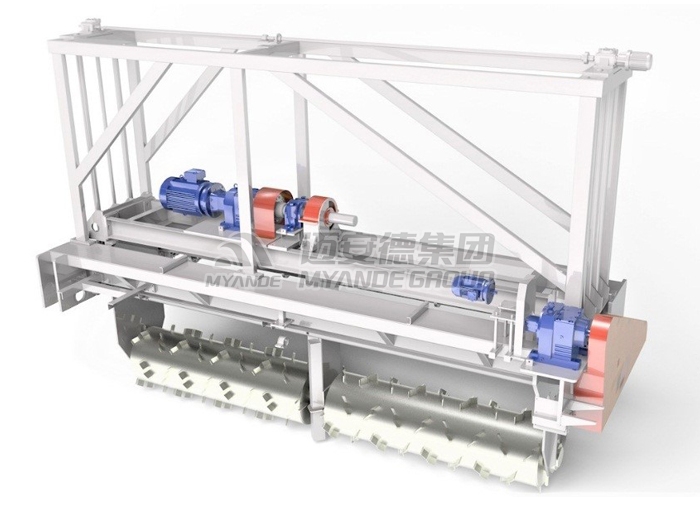 出料机是发酵床的核心配套设备。发酵结束后,出料机定量且均匀地将物料从发酵床内送出,通过输送设备送至烘干或打包工段。 待物料发酵结束后,将出料机移至发酵床上,启动机行走机构,出料机在纵向轨道上行走,同时出料螺旋将物料推向一侧进行出料,发酵料从发酵床侧边料门出至皮带输送机,进入下一个工段。
