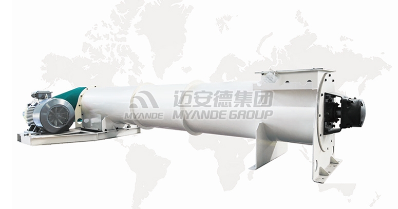 菌液或者水由泵通过雾化喷嘴喷吹进混合机内,其转子上的桨叶沿轴向和周向按一定的规律交错排列,且叶面与转子轴线呈一定的角度,从而使叶面之间形成一个螺旋面。动力通过链轮由电机传给转子,转子工作时一边带动物料不停地翻转,物料与液体混合,一边将物料向出料口推进,最终达到接种均匀的目的。