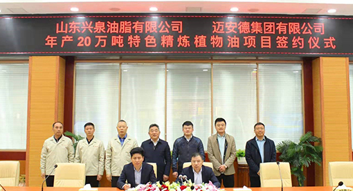 新春伊始,山东兴泉油脂有限公司(以下简称山东兴泉)与迈安德集团有限公司(以下简称迈安德)二次合作,签订了《年产20万吨特色植物油精炼项目》合同,双方深耕细作,做大做强特色精炼植物油产业。