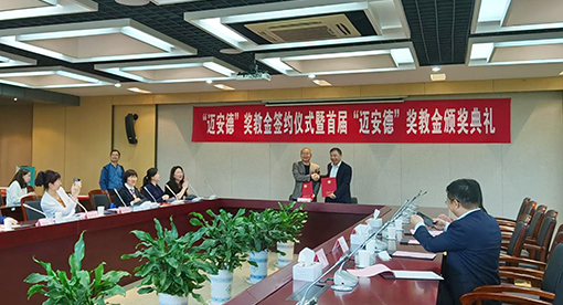 为了支持江南大学提高本科教学管理水平,支持江南大学教育事业的发展,加快江南大学推进“双一流”院校的建设,2021年4月22日迈安德集团在江南大学设立“迈安德奖教金”,鼓励本科教学管理人员精益求精、更好的架起学生与学科之间的桥梁,提高业务水平和效率、增强管理育人的服务意识,为企业与社会输送更多优质的栋梁之材。
