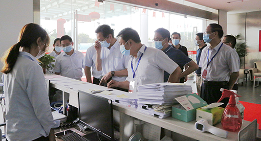 张耀武书记一行在经过体温测量和扬城码扫码后,进入厂区视察指导,听取了徐斌董事长对企业经营和复工情况介绍,查阅了疫情防控相关工作的档案资料,实地查看了员工分时段错峰就餐和车间员工送餐的工作,对迈安德前期疫情防控工作和现阶段复工复产所取得的成绩,给予了充分肯定。