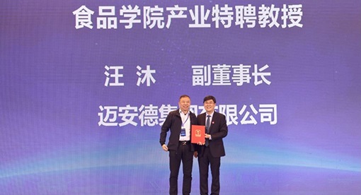 12月5日下午,江南大学食品学院第七届董事会第一次年会顺利召开。江南大学党委副书记符惠明,食品学院院长刘元法,研究生院院长吴小俊,社会资源处处长黄敏以及来自106家食品企业的领导和负责人出席会议。迈安德副董事长汪沐受邀出席会议并被聘为食品学院产业特聘教授。