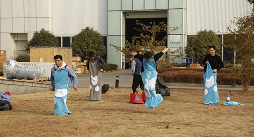本次趣味运动会项目集健身、竞技、团队合作于一体,共设8个比赛项目:疯狂毛毛虫、集体跳绳、摩肩接踵、财源滚滚、迈步向前、坐地起身、两人三足和拔河比赛,并且将传统的抽奖游戏“一投即中”贯穿在整个比赛活动期间。